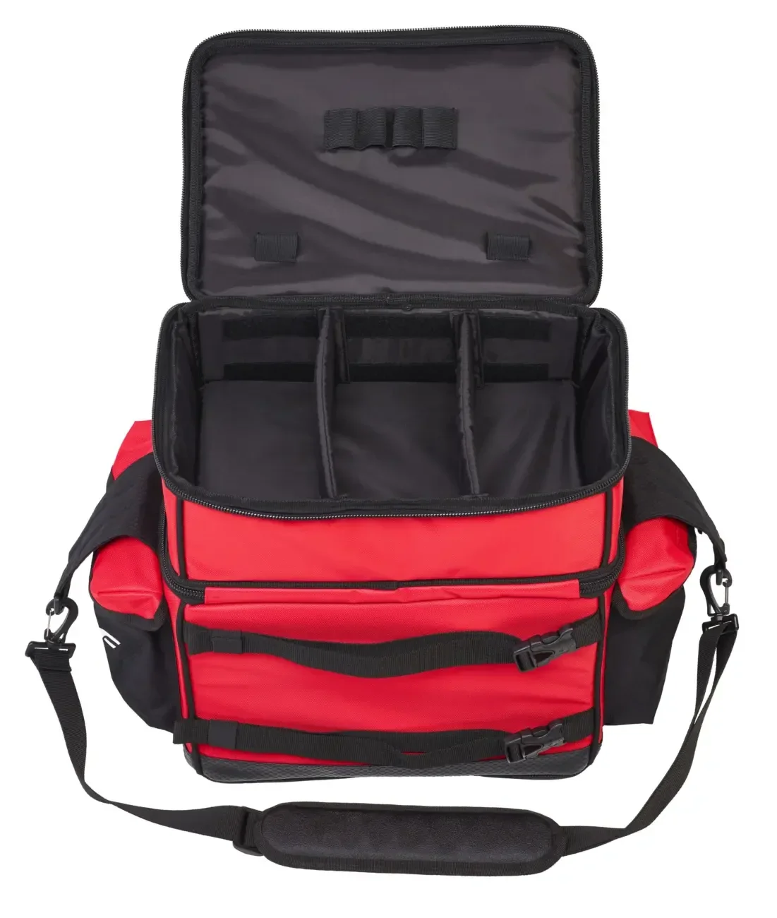 Borsa per il surfcasting realizzata in materiale semi-rigido con cerniere rinforzate anticorrosione. Molto capiente, grazie ai suoi 43 l di capacità, è estremamente pratica da trasportare e utilizzare. Grazie alle due cinghie regolabili con clip è possibile fissarla al carrello da sabbia, garantendo un trasporto confortevole anche su lunghe distanze. La tasca centrale contiene tre piccole trousse studiate per riporre le bobine e i mulinelli. Questa borsa contiene anche una grande scatola rigida modulare, perfetta per riporre piombi e altri accessori, mentre 3 tasche aggiuntive si trovano sui lati della borsa.