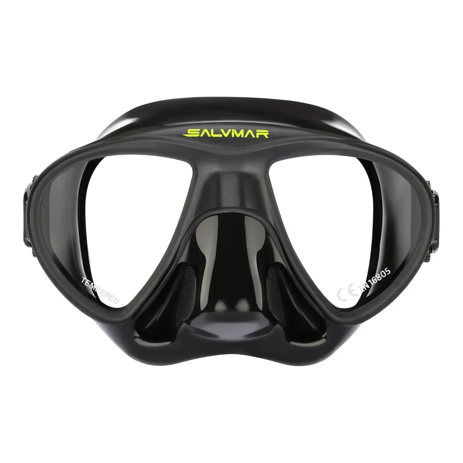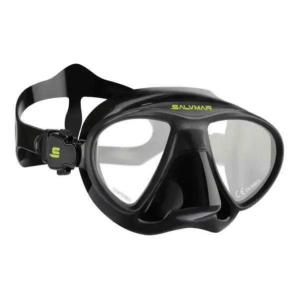 La maschera Goblin Salvimar è realizzata utilizzando la tecnologia di co-stampaggio. Il facciale in silicone ed il telaio vengono fusi insieme durante il processo di stampaggio. La maschera offre un ottimo campo visivo pur mantenedo un volume interno ridotto.